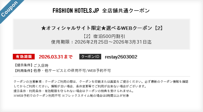 【オフィシャルサイト限定】(2/25-3/31)選べるWEBクーポン