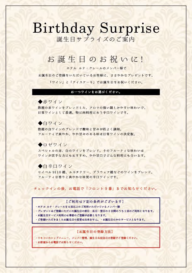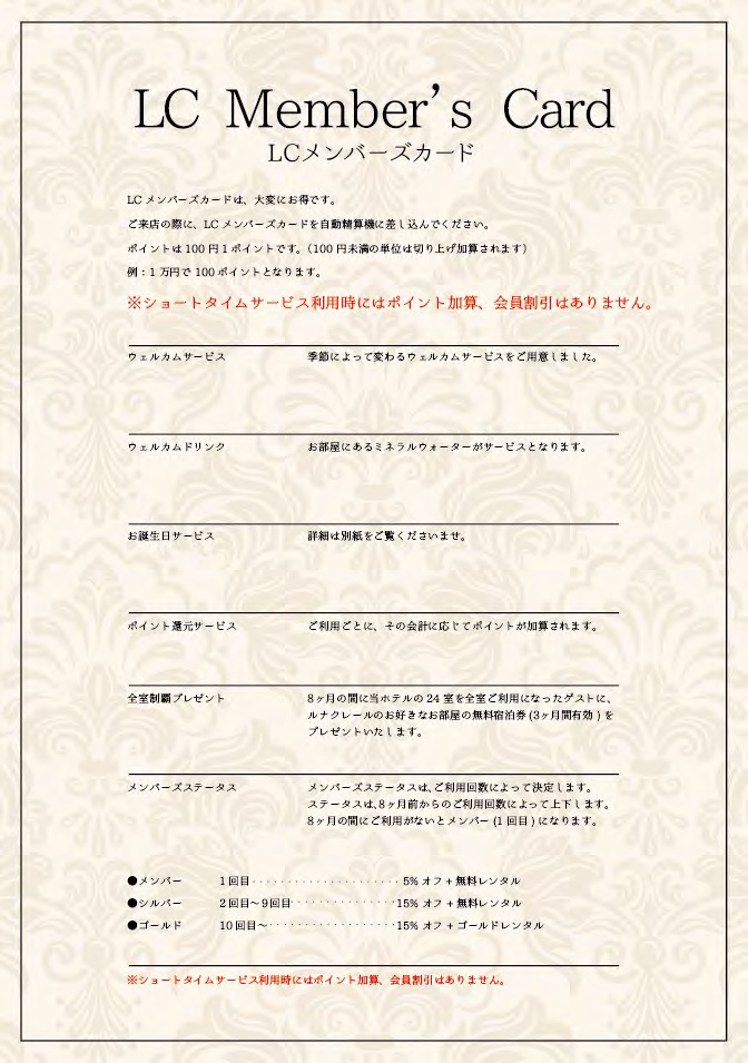 ルナクレールのメンバーズカードは大変お得です!